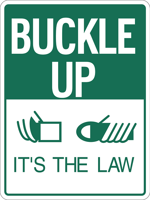 Image is a Buckle Up It's the Law sign.